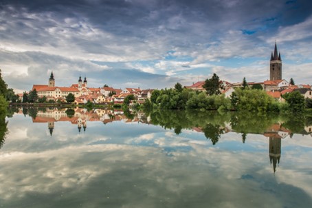 Telč é quase totalmente cercada por água (lagoas de peixes da época medieval), o que lhe confere um ar de “Veneza da Boêmia”.