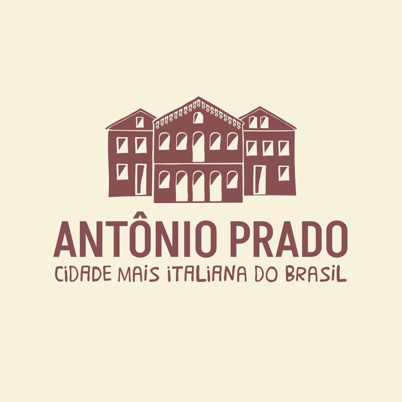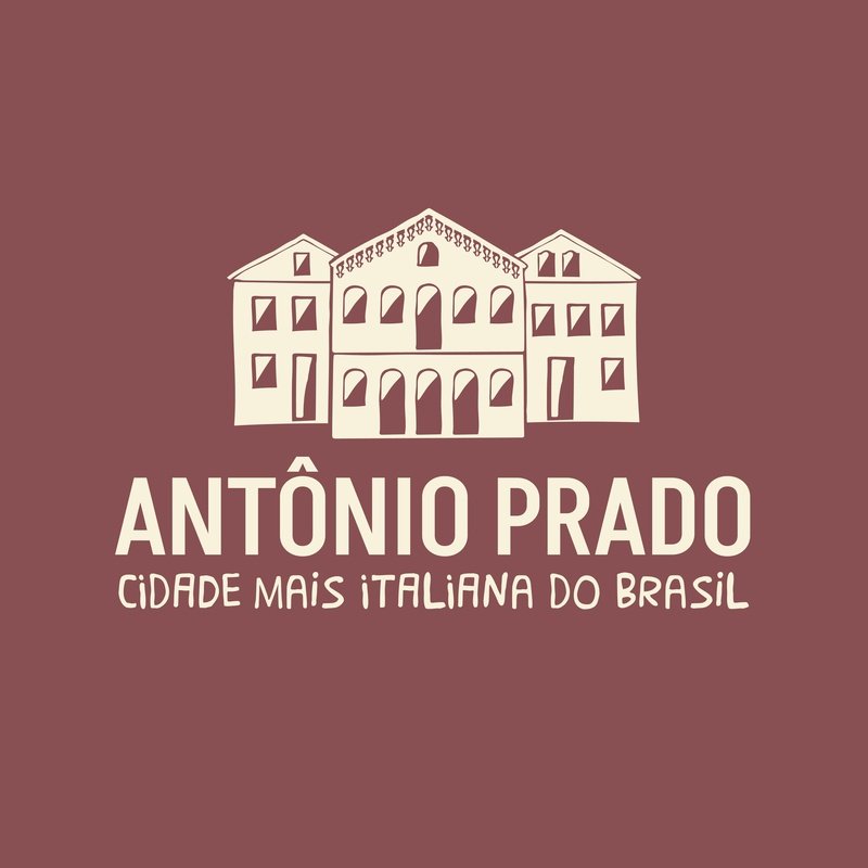 Outro destaque da marca é sua aplicação multilíngue, com expressões em português, inglês e talian, reforçando o caráter turístico e multicultural de Antônio Prado. As mensagens convidam os visitantes a vivenciar a cidade, fortalecendo o posicionamento como destino acolhedor e autêntico.