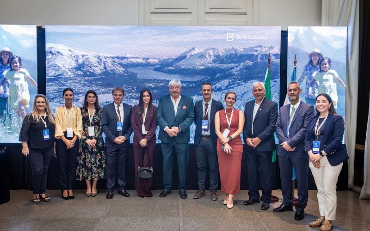 Comitiva de Bariloche e representantes do Consulado da Argentina durante coquetel de lançamento da conectividade 2026 para o destino | Crédito: Emprotur Bariloche