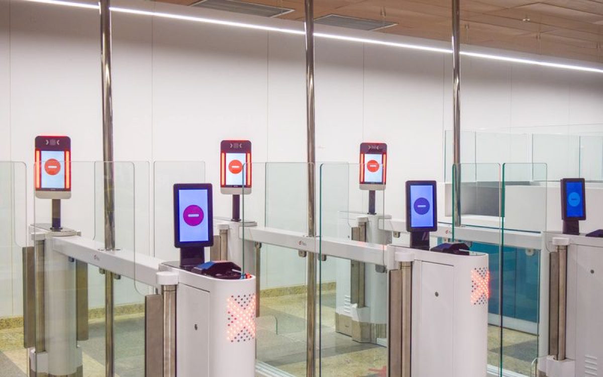 Os novos ABC Gates (Automated Border Control Gates) — sistema de controle migratório automatizado com tecnologia de biometria facial, implementado pela SITA. Crédito: Patricia Lanini – Divulgação NOA