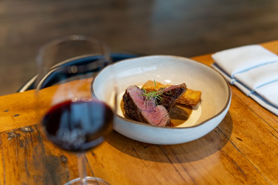 A experiência começa com um Welcome Drink com o espumante Essenza e presunto cru da Mantiqueira (produzido no local), seguido por quatro etapas harmonizadas: peixe branco com beurre blanc e caviar de azedinha, corte suíno nobre com demiglacê de mirtilo, filé mignon com molho dijon e mil-folhas de batata, e um entremet de café como sobremesa.