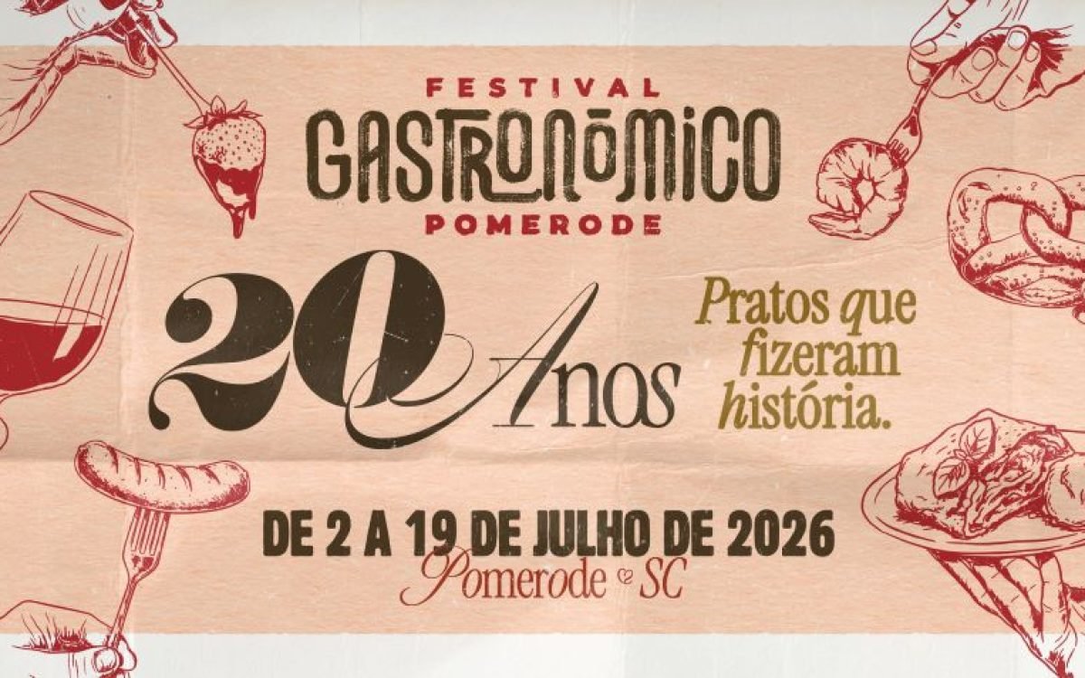 Um dos eventos mais tradicionais e aconchegantes da gastronomia brasileira fará, em 2026, uma celebração à própria história. Ao atingir a 20ª edição, o Festival Gastronômico de Pomerode (SC) vai resgatar sabores que marcaram época, provocando a memória afetiva dos visitantes. O tema escolhido para a edição 2026, de 2 a 19 de julho, é: “Pratos que Fizeram História”.