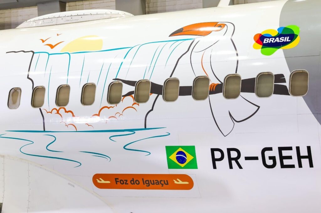 A aeronave da iniciativa Conheça o Brasil: Voando faz homenagem à cidade de Foz do Iguaçu e convida os passageiros a visitarem o estado do Paraná. Foto: Morgan Spotter
