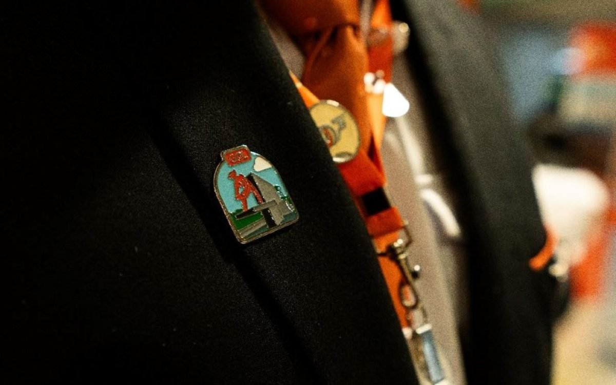 Pin em homenagem ao “Monumento aos Garimpeiros”, símbolo de Roraima, distribuído aos passageiros dos voos inaugurais entre Manaus e Boa Vista – Divulgação/GOL