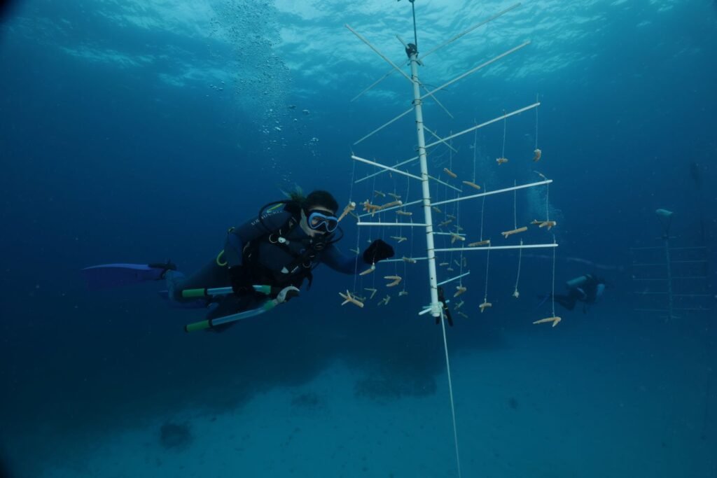MSC Foundation instalando novas estruturas para berçário de corais. Crédito: Simone Piccoli