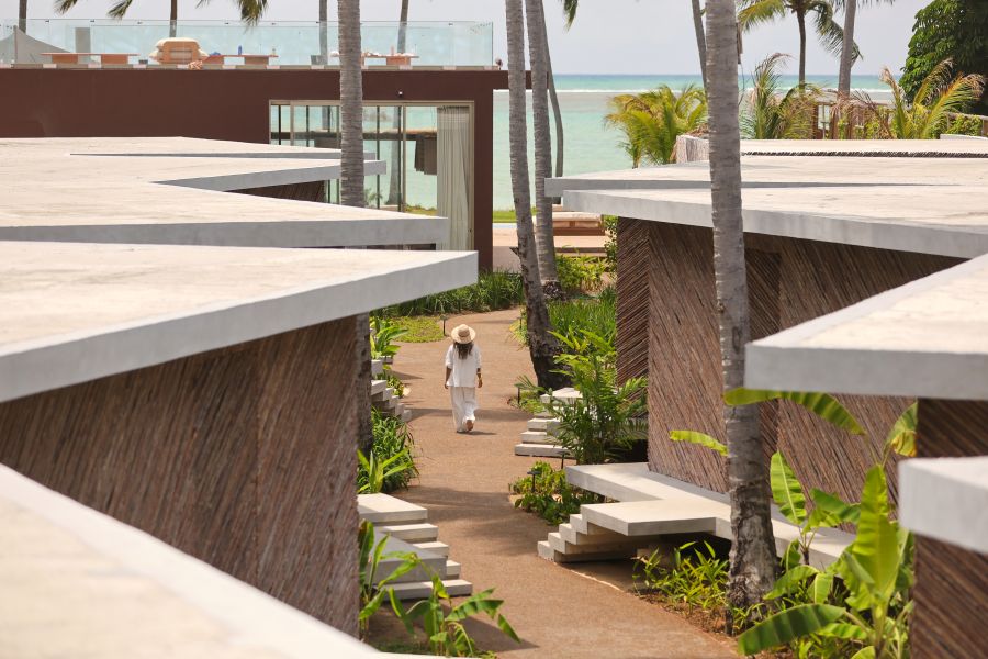Com direção criativa de Juliana Pippi e arquitetura do alagoano Rodrigo Fagá, o hotel expressa o encontro entre a estética contemporânea do Sul e a essência calorosa do Nordeste. Cada uma das dez cabanas reflete o propósito do design afetivo, onde o conforto se alia à natureza: piscinas aquecidas com hidromassagem, mobiliário autoral e obras de arte se unem a texturas e materiais naturais, transformando o feito à mão em linguagem de acolhimento.