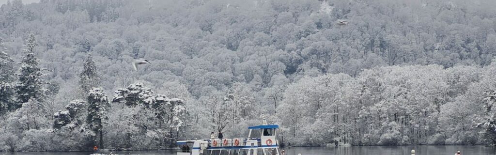- Cruzeiros no Lago Windermere Explore o maior lago natural da Inglaterra a bordo de um barco a vapor vintage operado pela Windermere Lake Cruises.(abre em uma nova aba)Partindo de Bowness, Ambleside ou Lakeside, os passageiros podem desfrutar do ambiente tranquilo com uma bebida quente na mão, ou reservar um bilhete de 24 horas e desembarcar para passeios de inverno e almoços com vista para o lago em um dos restaurantes à beira-lago. Experimente o Lake View .(abre em uma nova aba)Em Bowness, desfrute de um bar, grill e restaurante especializado em carnes assadas, ou aqueça-se junto a uma lareira crepitante com um assado de pub em uma estalagem tradicional, como o The Royal Oak.(abre em uma nova aba)em Ambleside. Como chegar: O aeroporto internacional mais próximo é o Aeroporto de Manchester.(abre em uma nova aba)A viagem de carro até o Lago Windermere pode levar entre uma hora e 40 minutos e duas horas, dependendo do destino.