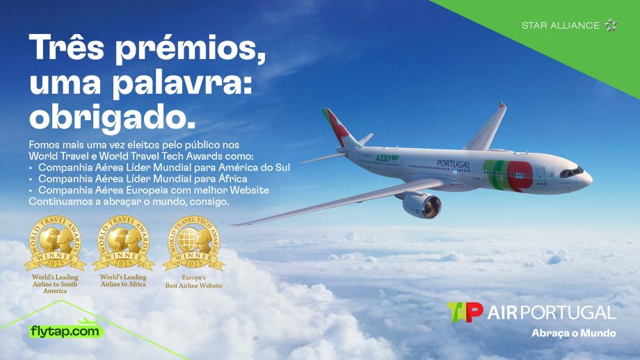A TAP Air Portugal foi eleita nos World Travel Awards 2025 como a Companhia Aérea Líder Mundial a voar para a América do Sul e a Companhia Aérea Líder Mundial a voar para África.