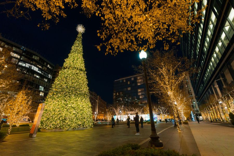 No CityCenterDC, o Natal assume um tom urbano e contemporâneo. O complexo, que reúne boutiques, restaurantes e galerias de arte a poucos quarteirões da Casa Branca, se transforma em uma das áreas mais iluminadas da cidade. No centro da praça, uma árvore de 23 metros domina o cenário, cercada por esculturas metálicas e túneis de luz que criam o clima perfeito para fotos e passeios noturnos.